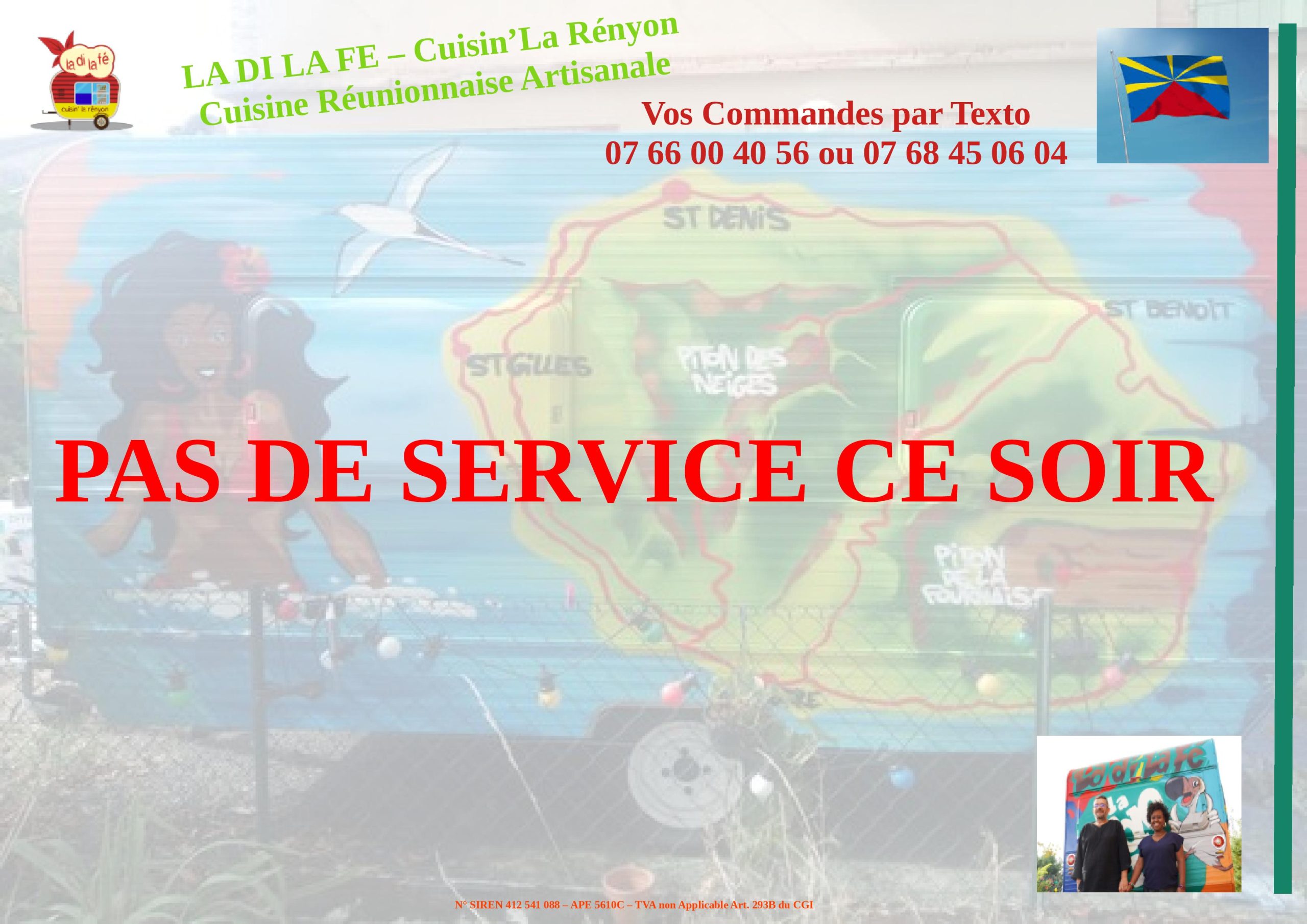 Livraison tous les soirs de 19h à 22h avec la ou les formules du jour