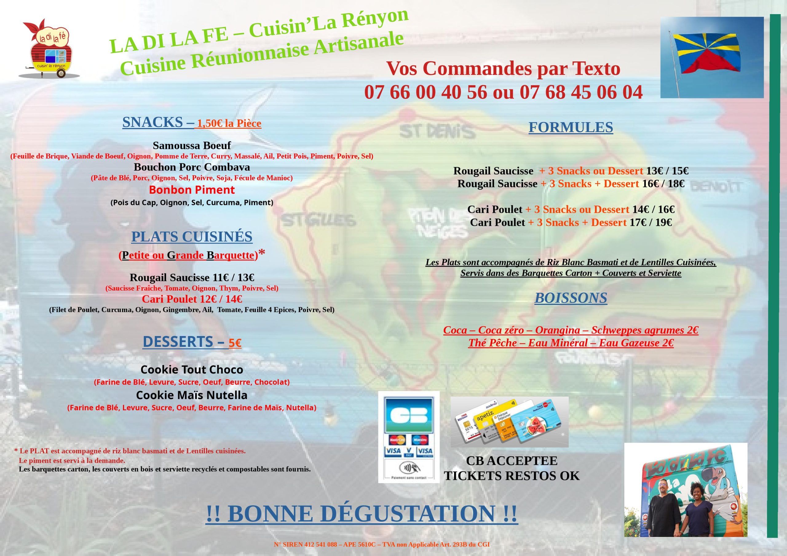 (Veuillez nous contacter avant 16h ou la veille pour une commande hors menu du jour)